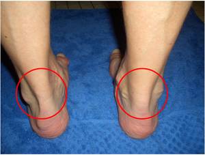 Abb.1: Zeichen einer chronischen Sehnenerkrankung (Achyllodynie). Im Seitenvergleich erkennt man die verdickte Sehne rechts.