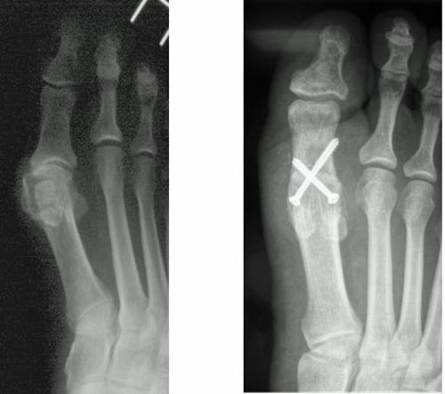 Abb.6: Fusion eines Großzehengrundgelenkes mit Korrektur der Hallux valgus Fehlstellung